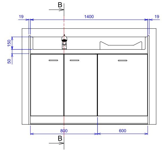 - 2 joues mélaminées à disposer selon la configuration du local (Dimensions hors tout avec joues : 1438(L) x 850(Pf) mm)