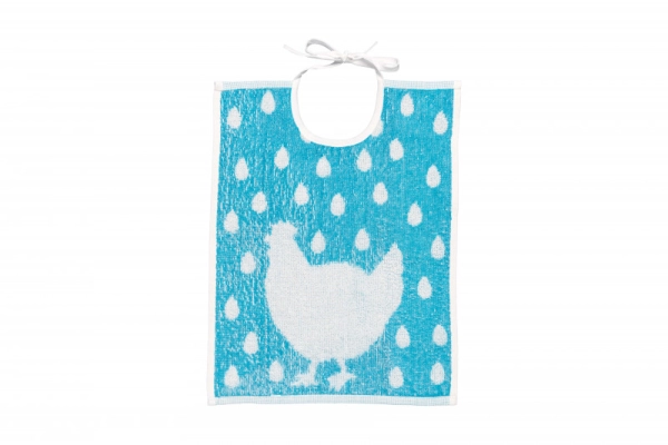 Ce lot de 12 bavoirs motif poule à encolure lacettes en coton polyester 380g 3 couleurs assortis est recommandé pour les crèches et les professionnels de la petite enfance.